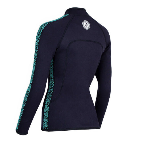 Two Bare Feet Womens Silicone Print Series Full Zip 2.5mm Wetsuit Jacket (Black/Mint)